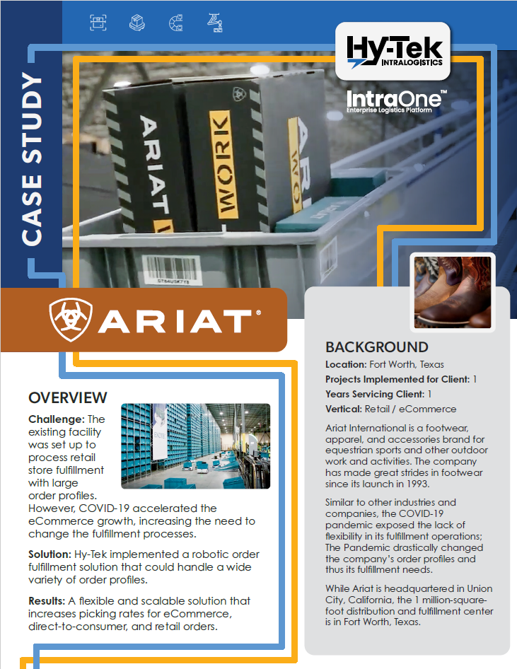 Solution:Â Hy-Tek implemented a robotic order fulfillment solution that could handle a wide variety of order profiles.Â